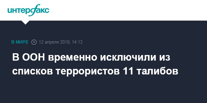 Москва. 12 апреля. INTERFAX.RU - Из санкционных списков ООН временно исключены 11 представителей запрещенного в РФ движения "Талибан", чтобы упростить переговорный процесс по афганскому урегулированию, заявил в пятницу "Интерфаксу" специальный представитель президента РФ по Афганистану Замир Кабулов.