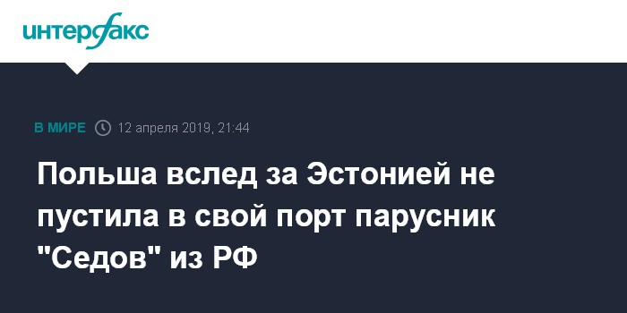 Москва. 12 апреля. INTERFAX.RU - Польские власти приняли решение не пускать в свои территориальные воды российский парусник "Седов", сообщают западные СМИ.