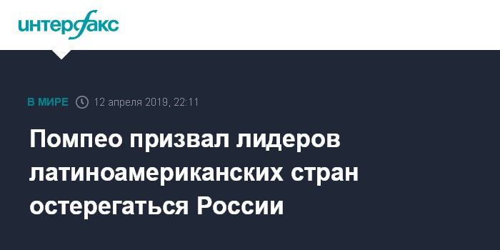 Москва. 12 апреля. INTERFAX.RU - Государствам Латинской Америки нужно опасаться деятельности России в регионе, заявил в пятницу госсекретарь США Майк Помпео.