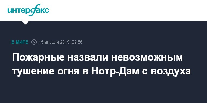 Пожарные назвали невозможным тушение огня в Нотр-Дам с воздуха