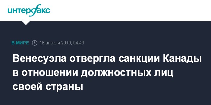 Москва. 16 апреля. INTERFAX.RU - Каракас считает санкции, введенные Канадой в отношении должностных лиц Венесуэлы, незаконными, заявил МИД страны.