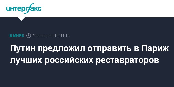 Путин выразил надежду, что великий собор удастся восстановить, и предложил отправить во Францию "лучших российских специалистов, имеющих богатый опыт реставрации памятников мирового культурного наследия, в том числе - произведений средневекового зодчества".