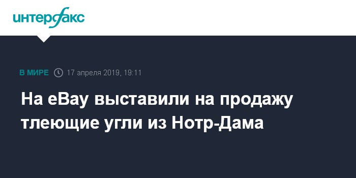 Москва. 17 апреля. INTERFAX.RU - На торговой площадке eBay разместили объявление о продаже углей с пожара в Нотр-Даме, пишет в среду Daily Mail.