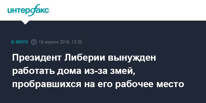 Москва. 19 апреля. INTERFAX.RU - Президент Либерии Джордж Веа не смог попасть на свое рабочее место из-за находившихся в здании змей, сообщает в пятницу агентство Associated Press.