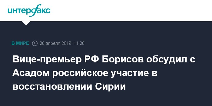 Вице-премьер РФ Борисов обсудил с Асадом российское участие в восстановлении Сирии