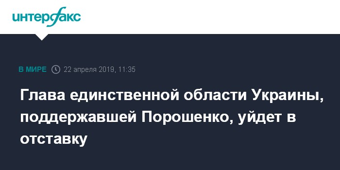 Глава единственной области Украины, поддержавшей Порошенко, уйдет в отставку