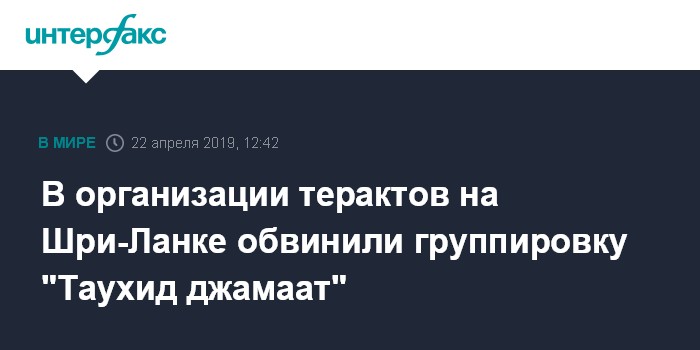 Москва. 22 апреля. INTERFAX.RU - Власти Шри-Ланки в понедельник обвинили радикальную исламистскую группировку "Таухид джамаат" в совершении серии терактов во время католического пасхального воскресенья, сообщает Bloomberg.