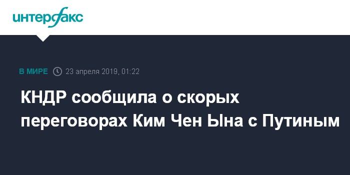 Москва. 23 апреля. INTERFAX.RU - Лидер КНДР Ким Чен Ын в скором времени прибудет с визитом в РФ, где проведет переговоры с российским президентом Владимиром Путиным, сообщает во вторник северокорейское агентство ЦТАК.