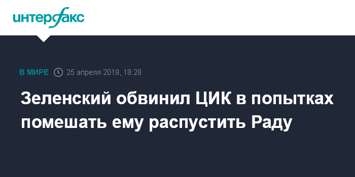 Москва. 25 апреля. INTERFAX.RU - Победивший на выборах президента Украины Владимир Зеленский заявил, что Центризбирком умышленно затягивает официальное объявление итогов голосования для того, чтобы его инаугурация состоялась после 27 мая и, как следствие, он не смог распустить Верховную Раду.