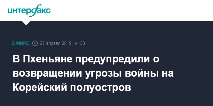 В Пхеньяне предупредили о возвращении угрозы войны на Корейский полуостров