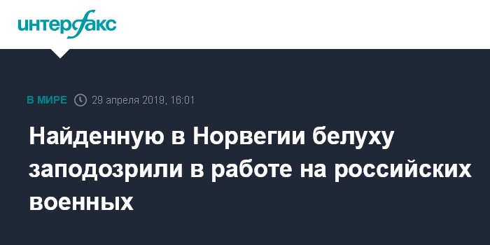 Москва. 29 апреля. INTERFAX.RU - Белуху с креплением для экшн-камеры, обнаруженную у северного побережья Норвегии, вероятно, тренировали российские военные, сообщает в понедельник газета The Guardian.