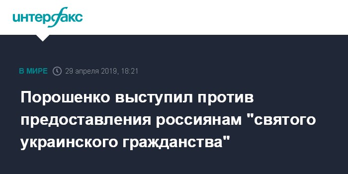 Москва. 29 апреля. INTERFAX.RU - Президент Украины Петр Порошенко выступил против того, чтобы раздавать россиянам украинское гражданство.