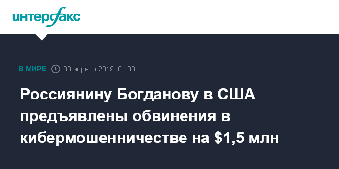 Россиянину Богданову в США предъявлены обвинения в кибермошенничестве на $1,5 млн