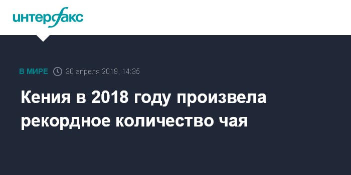 Москва. 30 апреля. INTERFAX.RU - Кения, крупнейший поставщик черного чая на мировой рынок, по итогам 2018 года увеличила его производство на 12% - до нового рекорда, при этом экспорт в Россию вырос до максимума за 10 лет.