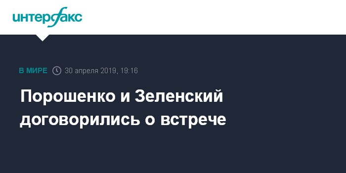 Москва. 30 апреля. INTERFAX.RU - Президент Украины Петр Порошенко во вторник позвонил своему преемнику Владимиру Зеленскому и поздравил его с победой на выборах, они договорились вскоре встретиться и обсудить политику на российском направлении.