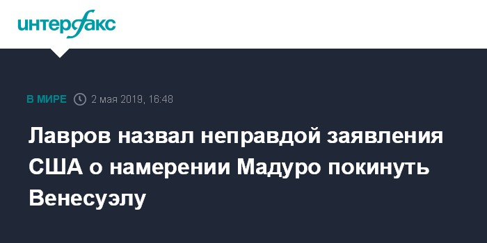 Москва. 2 мая. INTERFAX.RU - Заявления представителей администрации США о том, что президент Венесуэлы Николас Мадуро планировал покинуть страну во время попытки госпереворота, не соответствуют действительности, заявил в четверг глава МИД России Сергей Лавров.