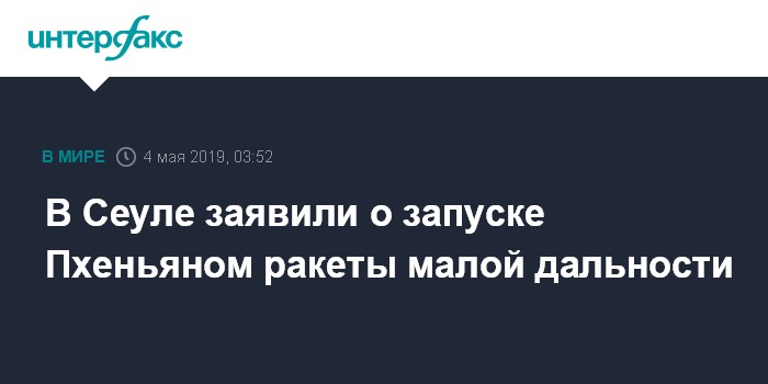 Москва. 4 мая. INTERFAX.RU - Северная Корея в субботу выпустила ракету малой дальности в направлении Восточного моря, сообщает агентство "Ренхап" со ссылкой на Объединенный комитет начальников штабов Южной Кореи (JCS).