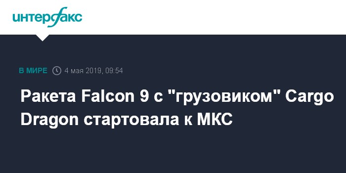 Ракета Falcon 9 с "грузовиком" Cargo Dragon стартовала к МКС