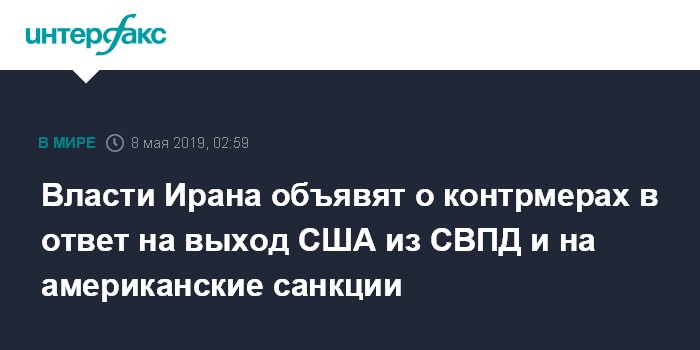 Москва. 8 мая. INTERFAX.RU - Иран, как ожидается, в среду объявит об ответных действиях в связи с выходом США из Совместного всеобъемлющего плана действий (СВПД).