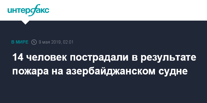 Москва. 9 мая. INTERFAX.RU - Пожар произошел в среду вечером на азербайджанском трубоукладочном судне "Исрафил Гусейнов" в Каспийском море, 14 человек получили ожоги различной степени тяжести.