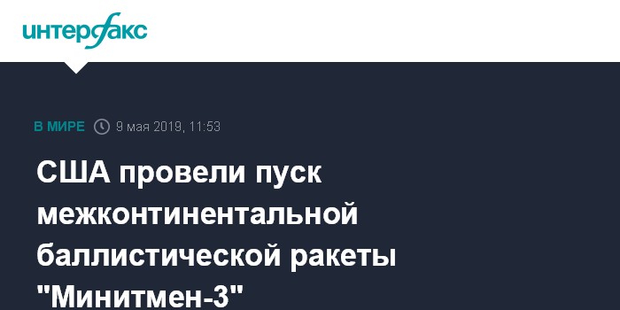 Москва. 9 мая. INTERFAX.RU - Соединенные Штаты в четверг осуществили очередной испытательный пуск межконтинентальной баллистической ракеты "Минитмен-3" (Minuteman III), сообщило Командование глобального удара ВВС США.