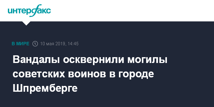 Москва. 10 мая. INTERFAX.RU - Германские правоохранительные органы расследуют случай вандализма на советском воинском кладбище в городе Шпремберге, сообщает в пятницу посольство России в Германии.
