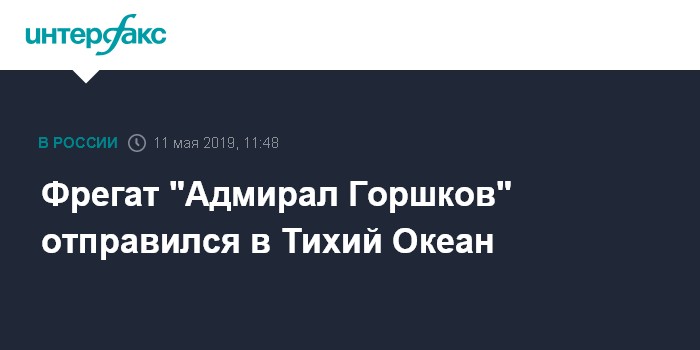 Москва. 11 мая. INTERFAX.RU - Отряд кораблей Северного флота во главе с фрегатом "Адмирал Горшков" отправился из Владивостока в Тихий Океан, сообщили в субботу "Интерфаксу" в пресс-службе флота.