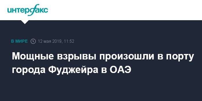 Москва. 12 мая. INTERFAX.RU - Несколько мощных взрывов произошли в воскресенье в порту города Фуджейра (ОАЭ), сообщили региональные СМИ.