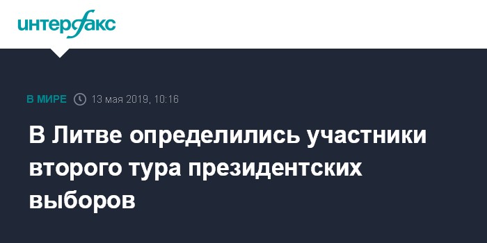 Москва. 13 мая. INTERFAX.RU - Во втором туре президентских выборов в Литве встретятся член сейма, бывший министр финансов и кандидат от консерваторов Ингрида Шимоните и экономист, бывший советник президента банка SEB bankas Гитанас Науседа.