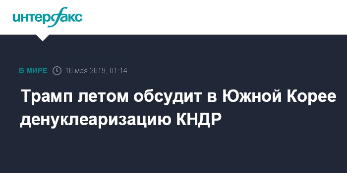 Москва. 16 мая. INTERFAX.RU - Президент США Дональд Трамп летом посетит Южную Корею, чтобы обсудить северокорейскую ядерную проблему, сообщили в Белом доме.
