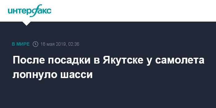 Москва. 16 мая. INTERFAX.RU - После посадки в аэропорту "Якутск" у воздушного судна авиакомпании (АК) "Якутия" Ан-24 произошло разрушение колес правой стойки шасси, сообщает в четверг пресс-служба аэропорта.