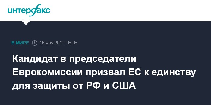Кандидат в председатели Еврокомиссии призвал ЕС к единству для защиты от РФ и США