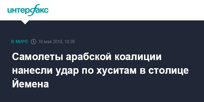 Москва. 16 мая. INTERFAX.RU - Самолеты возглавляемой Саудовской Аравией арабской коалиции совершили налет на столицу Йемена Сану, сообщает в четверг агентство Associated Press.