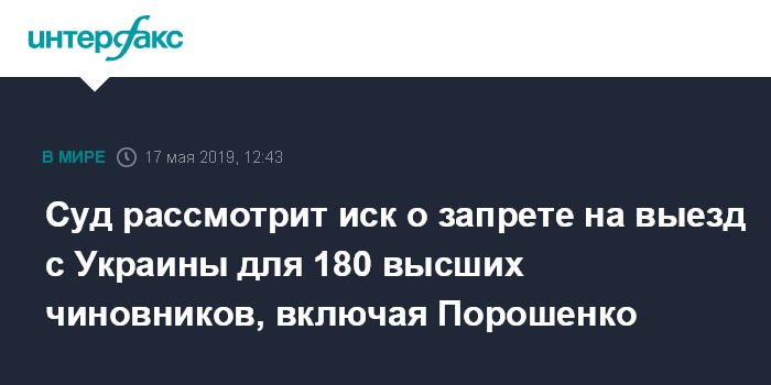 Москва. 17 мая. INTERFAX.RU - Окружной административный суд Киева открыл производство по иску о запрете после проведения парламентских и президентских выборов выезда из Украины топ-чиновников (всего 180 лиц).