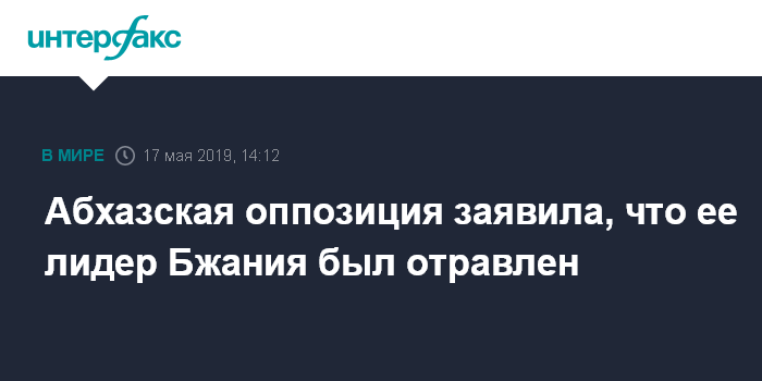 Москва. 17 мая. INTERFAX.RU - Оппозиция в Абхазии требует возбудить дело о возможном отравлении депутата парламента, лидера Блока оппозиционных сил Аслана Бжании.