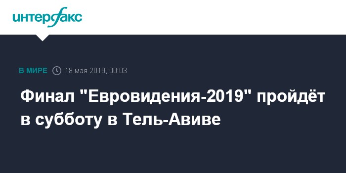 Финал "Евровидения-2019" пройдёт в субботу в Тель-Авиве