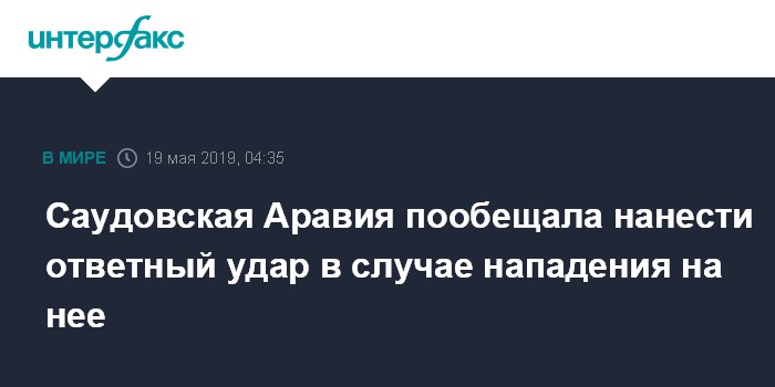 Москва. 19 мая. INTERFAX.RU - Саудовская Аравия не стремится к войне, но готова решительно ответить на любое нападение на нее, заявил государственный министр по иностранным делам королевства Адиль аль-Джубейр.