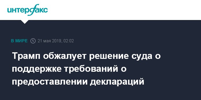 Трамп обжалует решение суда о поддержке требований о предоставлении деклараций
