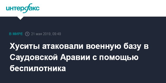 Москва. 21 мая. INTERFAX.RU - Йеменские повстанцы-хуситы заявили о нанесении удара по Саудовской Аравии с помощью беспилотного летательного аппарата, сообщает во вторник агентство Associated Press.