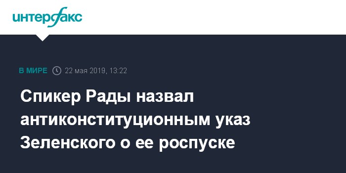 Москва. 22 мая. INTERFAX.RU - Председатель Верховной рады Украины Андрей Парубий заявил, что указ президента Владимира Зеленского о досрочном роспуске парламента и назначении внеочередных парламентских выборов ведет к конституционному кризису на Украине.
