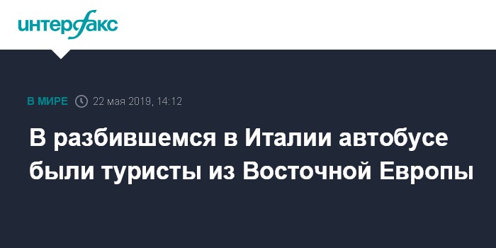 Москва. 22 мая. INTERFAX.RU - В разбившемся в Италии автобусе находились туристы из Восточной Европы, погибшая - женщина-гид, сообщает в среду издание Il Messaggero.