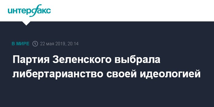 Москва. 22 мая. INTERFAX.RU - Основой идеологии украинской партии "Слуга народа", которая впервые будет участвовать в парламентских выборах в 2019 году, является либертарианство, сообщил советник президента Украины Владимира Зеленского, его представитель в Верховной раде Руслан Стефанчук.
