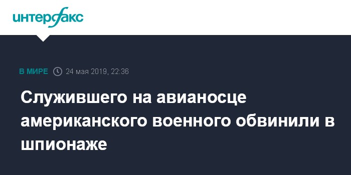 Речь идет о 26-летнем старшине ВМС США, который с 2016 по 2018 годы служил на борту атомного авианосца "Карл Винсон". Во время службы он имел доступ к информации о ядерных энергетических установках американских кораблей. Согласно данным следователей, военный собирался организовать передачу информации СМИ, а затем планировал перебежать в РФ.