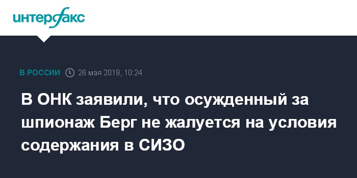 В ОНК заявили, что осужденный за шпионаж Берг не жалуется на условия содержания в СИЗО