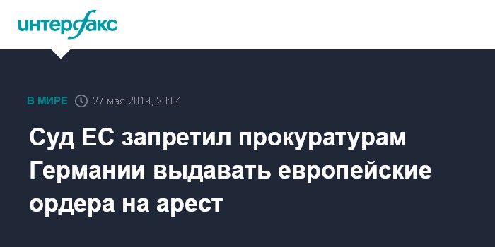 Москва. 27 мая. INTERFAX.RU - Согласно вынесенному в понедельник решению суда ЕС в Люксембурге, прокуратуры Германии не имеют права выдавать европейские ордера на арест.