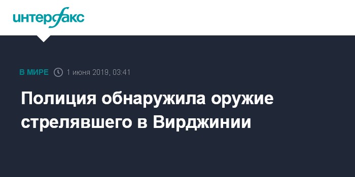 Москва. 1 июня. INTERFAX.RU - Полицейские обнаружили оружие на месте стрельбы в городе Вирджиния-Бич, штат Вирджиния, сообщил в субботу телеканал CNN.