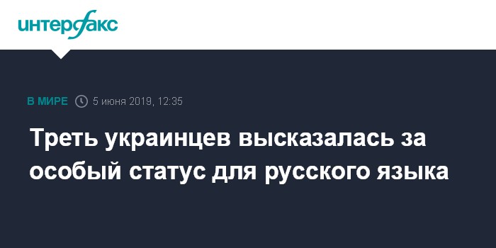 Москва. 5 июня. INTERFAX.RU - Две трети (66%) украинцев считают, что украинский язык должен быть единственным государственным языком, следует из опроса социологической группы "Рейтинг".