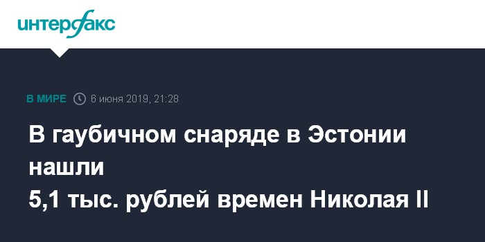 Москва. 6 июня. INTERFAX.RU - В Пярнуском уезде Эстонии обнаружен артиллерийский снаряд, внутри которого вместо взрывчатого вещества были спрятаны купюры Российской Империи.