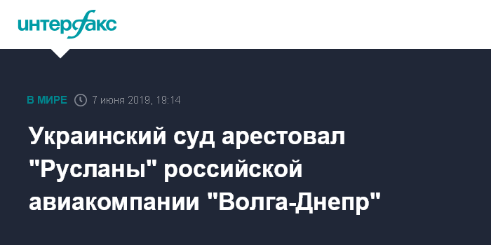 Москва. 7 июня. INTERFAX.RU - Подольский райсуд Киева по ходатайству Главного управления Национальной полиции Украины в Киеве арестовал и запретил эксплуатацию пяти гражданских транспортных Ан-124-100 "Руслан" авиакомпании "Волга-Днепр" (РФ). Летная годность самолетов была продлена с нарушением правил ICAO в обход украинского разработчика ГП "Антонов".