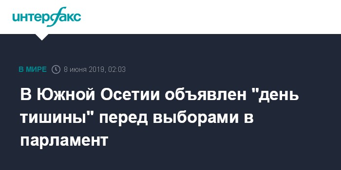 Москва. 8 июня. INTERFAX.RU - В Южной Осетии в субботу наступил "день тишины" в преддверии парламентских выборов, которые пройдут в республике в воскресенье, 9 июня.